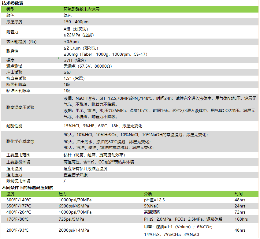 TC2000P是一種高性能的粉末內涂層,主要用于含H2S、CO2的高溫、高壓天然氣鉆井環境。