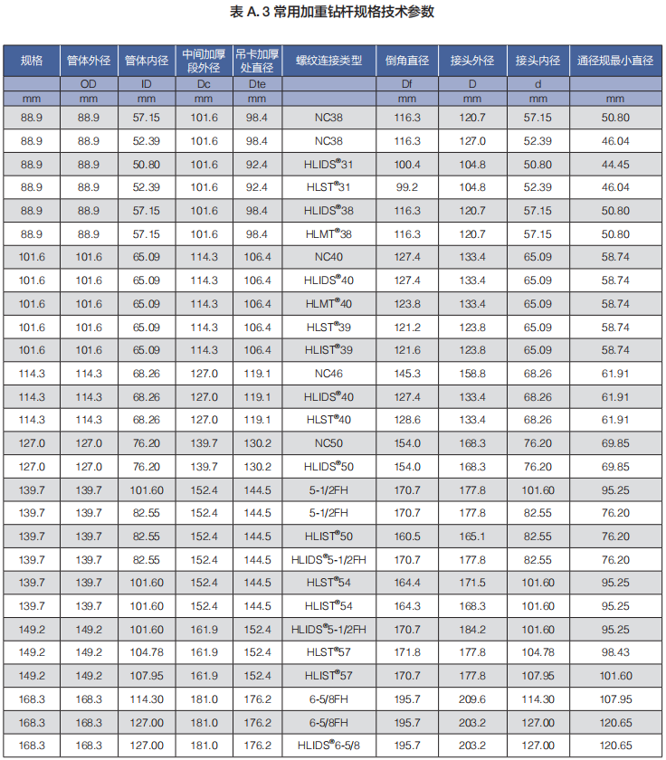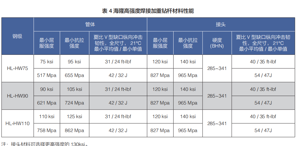 (b)焊接加重鉆桿包括:標準強度焊接加重鉆桿、高強度焊接加重鉆桿、抗硫化氫加重鉆桿和海隆特殊扣加重鉆桿;